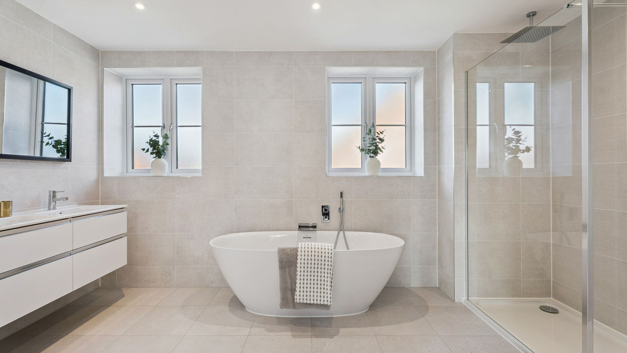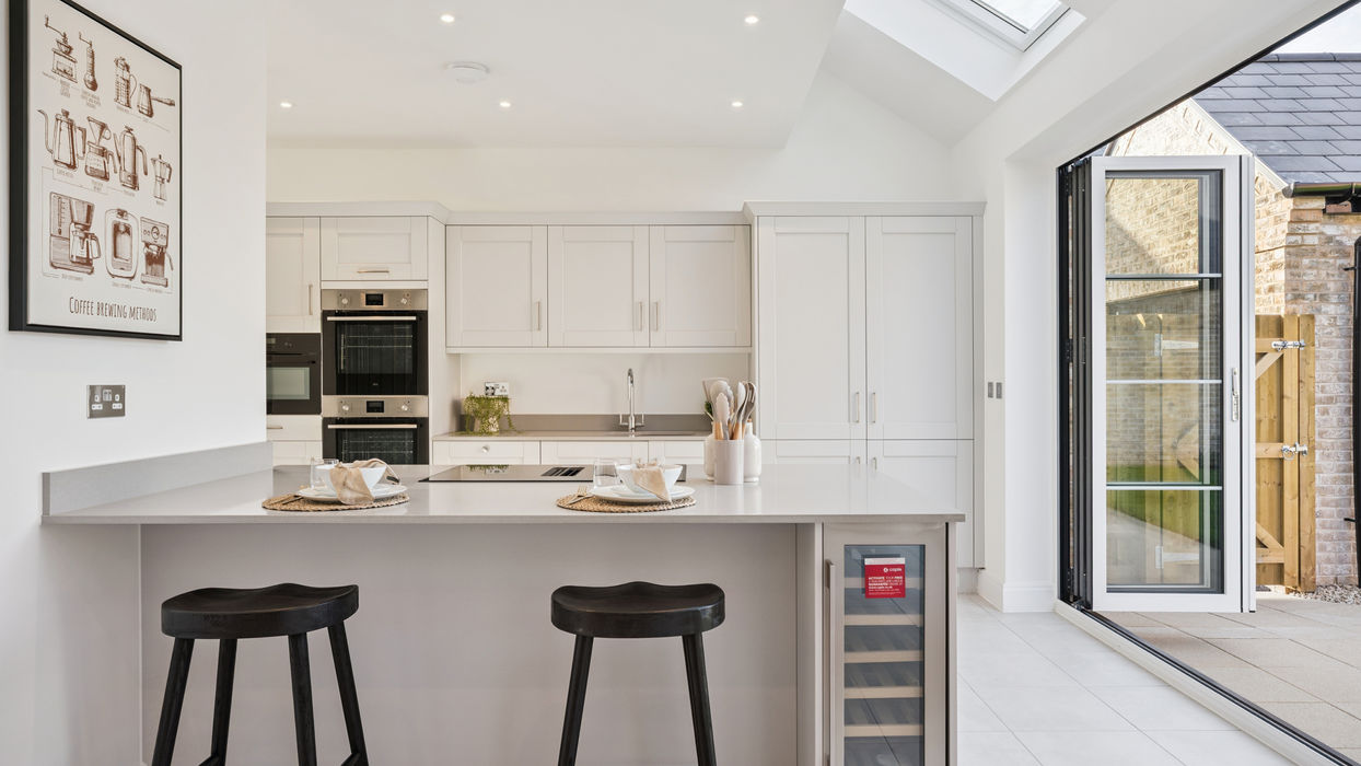 The Knightley is a luxurious, modern 5- bedroom detached home spread over three floors. This show home comes fully furnished. Featuring an elegant double fronted design, the wrap-around open plan kitchen, dining and living area offers separate but connected spaces, ideal for flexible living. Double sets of bi-folding doors lead to the garden. A sumptuous principal bedroom suite is accompanied by a second en suite bedroom on the first floor, with a balcony terrace overlooking the property frontage. The top floor includes three spacious doubles, two bathrooms and a utility.